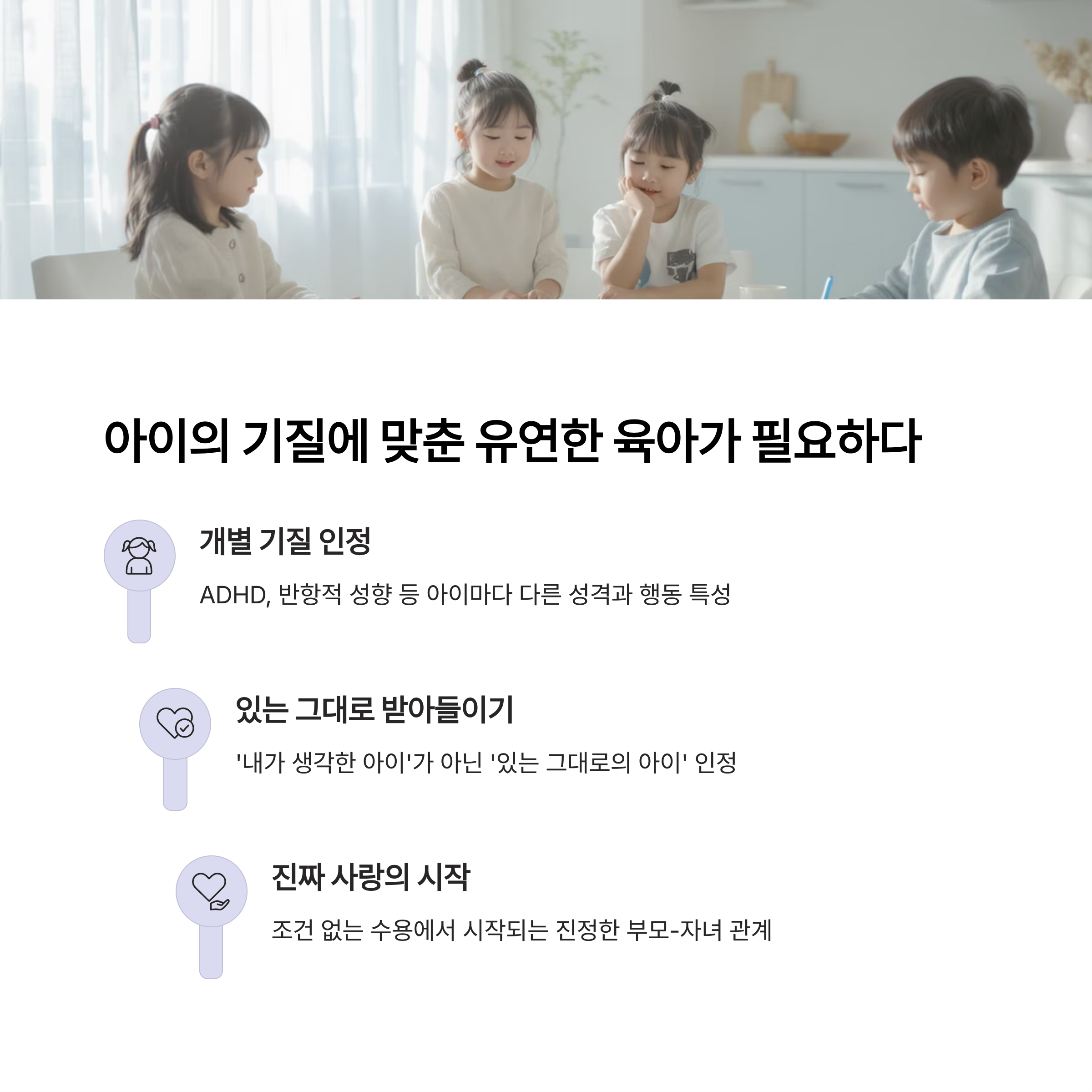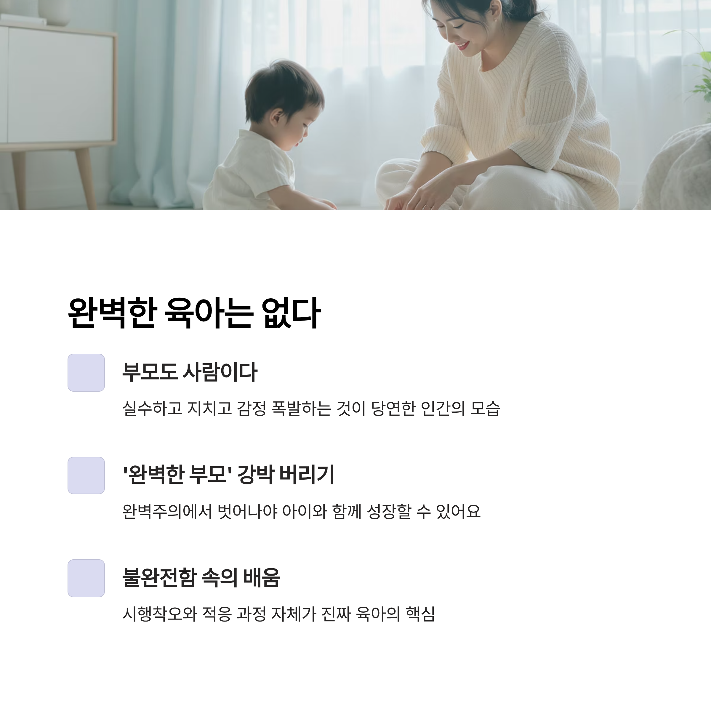 | 현실 육아 | 매 순간 새로운 변수와 돌발 상황이 이어집니다. |
