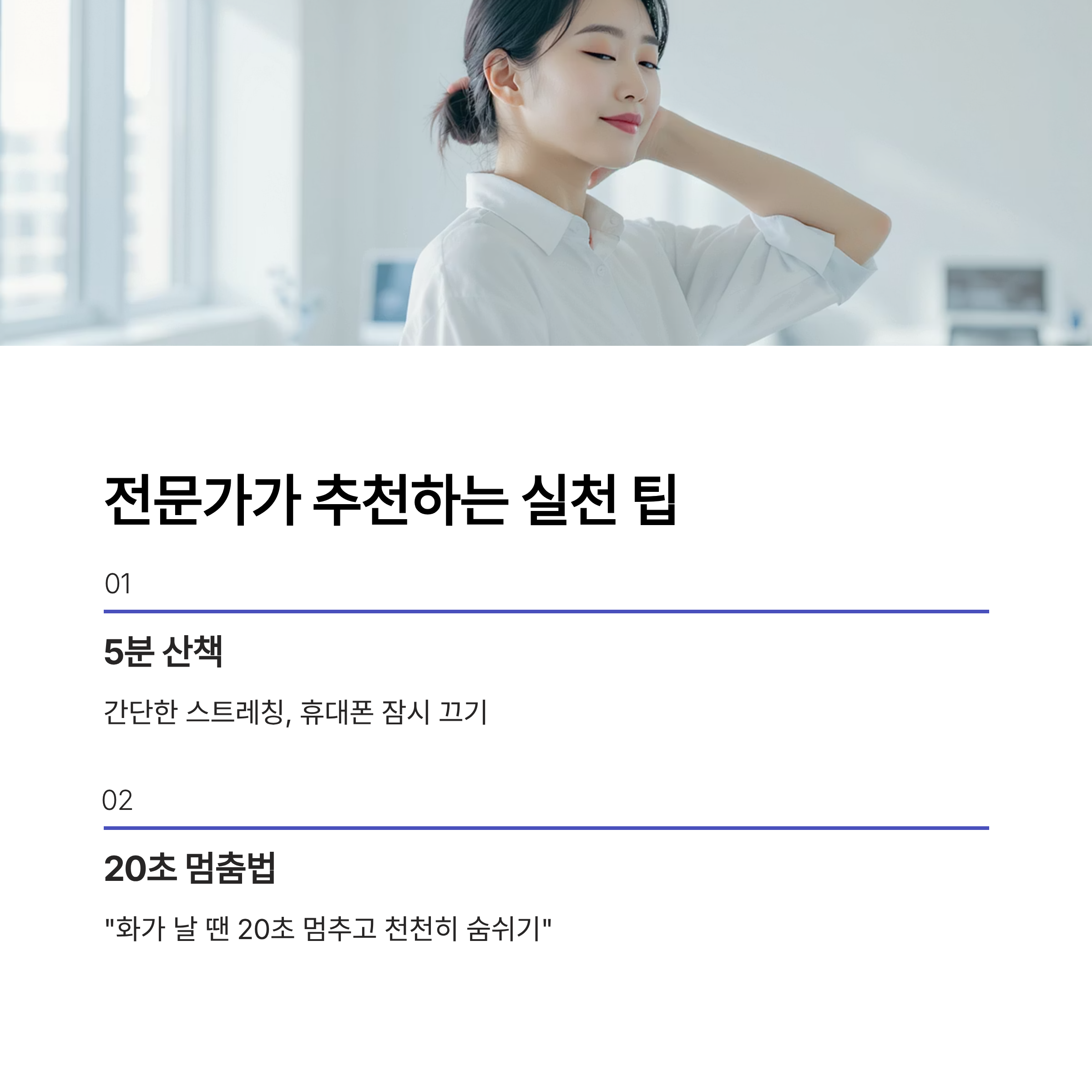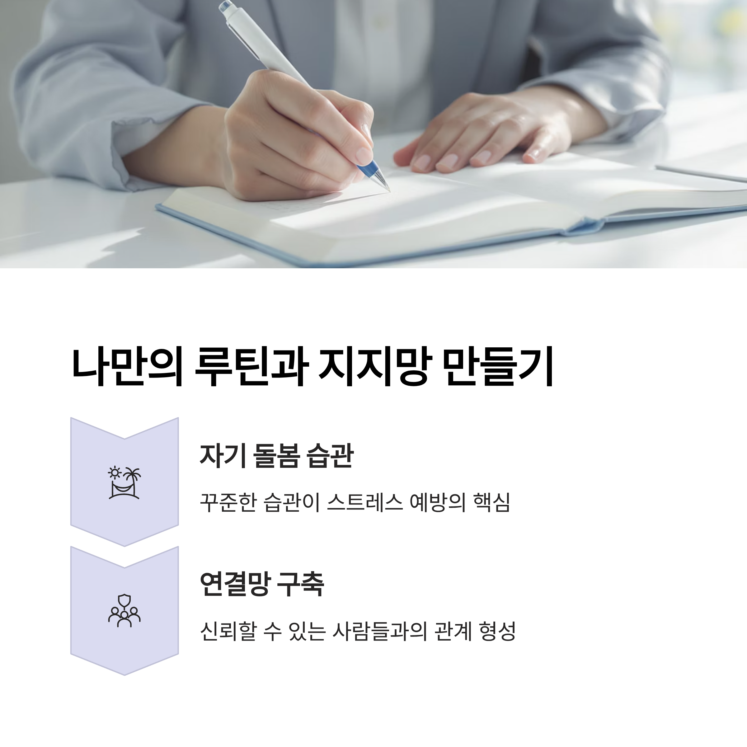 | 취미 | 짧은 독서나 음악 감상도 마음을 치유합니다. |