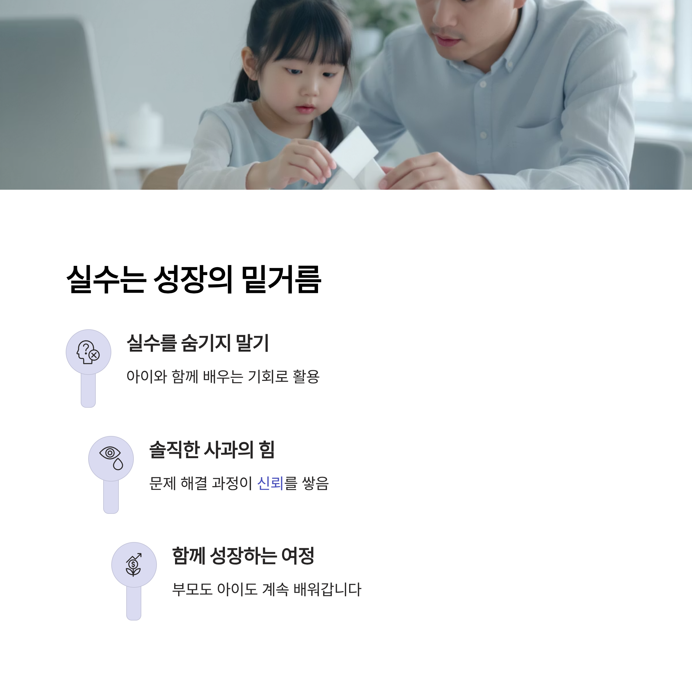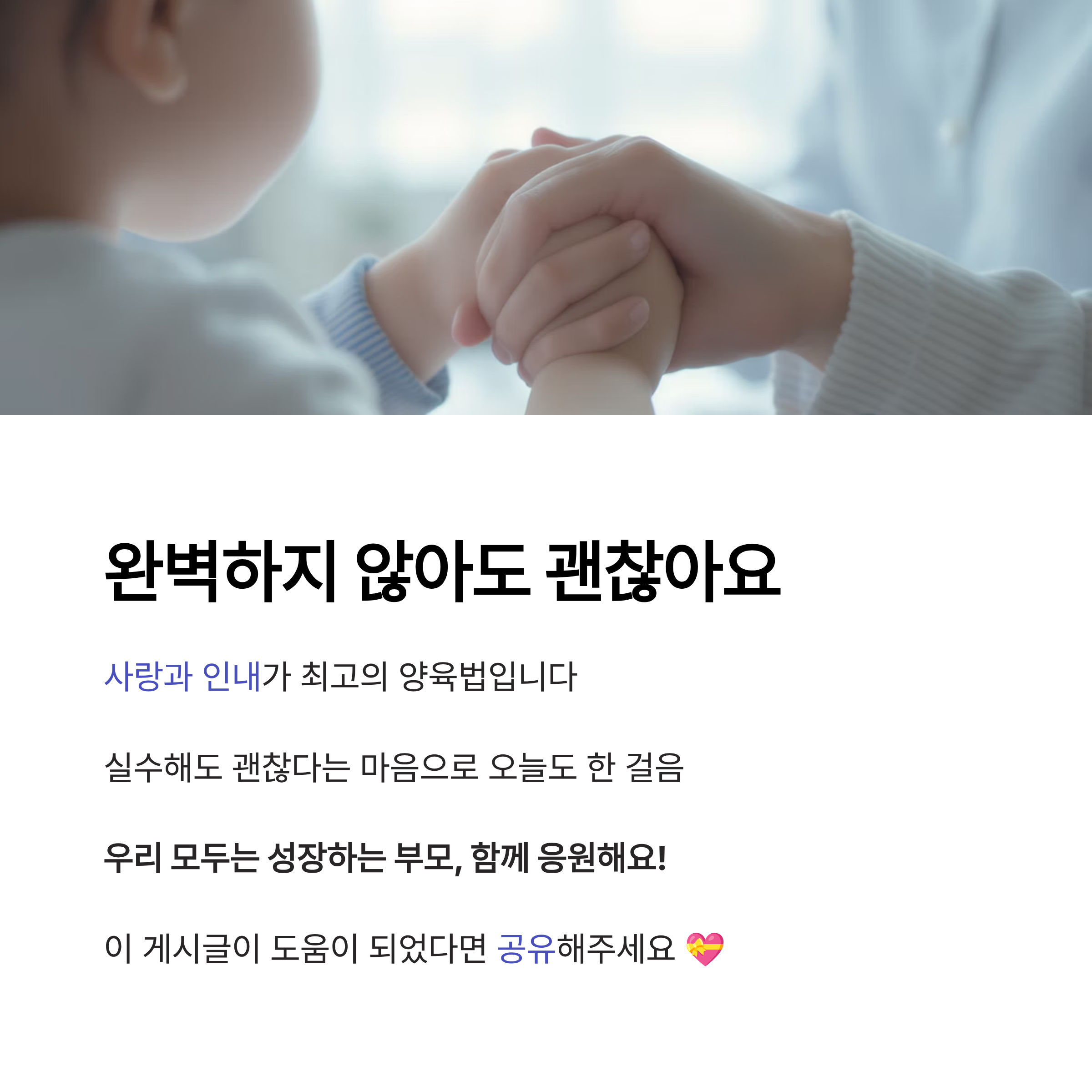 여러분은 아이를 키우면서 어떤 실수를 경험하셨나요? 혹은 지금도 고민하고 있는 부분이 있나요? 다른 부모님들에게 도움이 될 수 있도록 경험을 나눠주세요. 댓글로 여러분의 이야기를 남겨주시면 함께 공감하며 더 나은 방법을 찾아갈 수 있습니다.